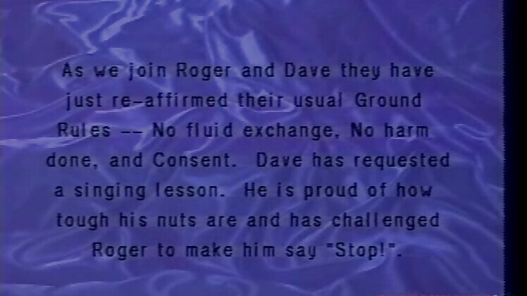 Roger of San Francisco and big, built Dave North play a ball-work "game of chance". Dave's nuts are slugged hundreds of times with Roger's fist and hit with a variety of clubs. Although Dave comes spontaneously while his nuts are worked, the hitting continues. For those of you who can never seem to find a real bodybuilder with CBT endurance, stop complaining – this is it!
