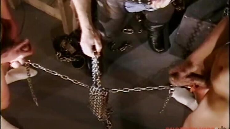 We got so many positive viewer comments about the competition scenes in Nutcracker's Ball, we decided to have another contest. Shotgun viewers have seen the two tall, dark and handsome Latins, Michael Evans and Andrew Montano, and asked for more. They are presented here in a double bondage combination that is just too complicated to describe. Suffice it to say that when one guy forgot himself and jerked, he pulled on the other guy's balls . . . who could do the same thing right back. Things got a little testy – and sore! This series will please bondage fans who like to see a muscular guy truly and totally restrained. There is more than one way to teach willpower. For a finale, Michael is put into a bondage position where he has to stand still or he will hurt himself even before the blows he is receiving. It turns out he couldn't do it, but by that time he was so turned on that he didn't care if he was screaming.