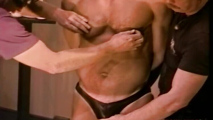 Roger directs a series of CBT endurance contests between big Dave North and built newcomer Rob Camma. First, Dave and Rob have their nuts put into a mutual pressure device and dare each other to clamp it down harder. Then a heavy chain is strung from both sets of nuts as they face each other. Both men struggle to keep standing as Roger hangs chain after chain on their swollen, tender nuts. The loser only went to his knees when the heavy chains forced him to!